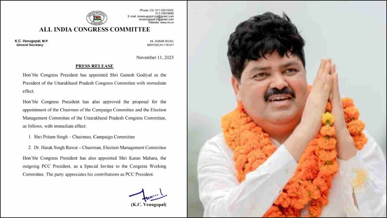 उत्तराखंड कांग्रेस से बड़ी खबर है। कांग्रेस आलाकमान ने उत्तराखंड में कांग्रेस में नेतृत्व परिवर्तन कर दिया है। कांग्रेस आलाकमान ने गणेश गोदियाल को फिर एक बार राज्य में कांग्रेस का प्रदेश अध्यक्ष पद सौंप दिया है। वहीं हरक सिंह रावत को चुनाव प्रबंधन समिति और प्रीतम सिंह को प्रचार समिति की कमान दी गई है।कांग्रेस आलाकमान ने गणेश गोदियाल को फिर एक बार उत्तराखंड कांग्रेस पद की जिम्मेदारी सौंप दी है। AICC के जनरल सेक्रेटरी केसी वेणुगोपाल ने इस संबंध में पत्र जारी कर दिया है। AICC ने निवर्तमान प्रदेश कांग्रेस अध्यक्ष करण माहरा को कांग्रेस कार्यसमिति में विशेष आमंत्रित सदस्य के तौर पर नियुक्त किया है