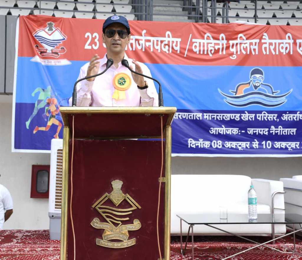 आयुक्त/सचिव मा॰ मुख्यमंत्री, दीपक रावत, ने बुधवार को तरणताल मानसखण्ड खेल परिसर, अंतरराष्ट्रीय स्टेडियम गौलापार, हल्द्वानी में 23वीं अंतर्जनपदीय/वाहिनी पुलिस तैराकी एवं क्रॉस कंट्री प्रतियोगिता वर्ष 2025 का शुभारंभ किया। इस अवसर पर 12 टीमों के प्रतिभागी एवं अधिकारी ne pratibhag kiya।