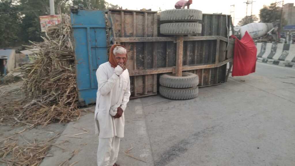लालकुआं। हल्दूचौड़ गन्ना सेंटर से चीनी मिल किच्छा को जा रही गन्ने से भरी ट्रैक्टर ट्राली असंतुलित होकर हाईवे में स्थित मैन चौराहे पर पलट गई, इस दौरान चौराहे पर खड़े ई-रिक्शा एवं ऑटो वाले पलटते ट्रैक्टर ट्राली की चपेट में आने से बाल-बाल बच गए, और बड़ी सड़क दुर्घटना होने से बच गई।