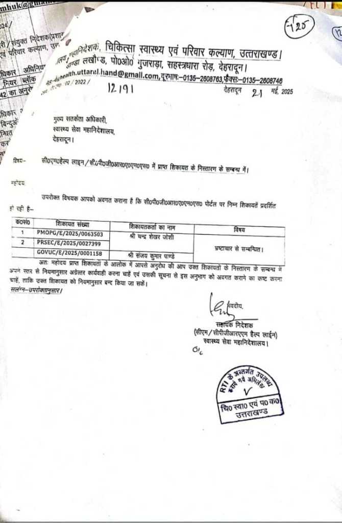 हमारा यह भी मानना है कि इस प्रकरण में स्वास्थ्य सचिव डॉक्टर आर. राजेश कुमार और डी.जी. हेल्थ डॉक्टर सुनीता टम्टा की भूमिका संदेहास्पद प्रतीत होती है। अतः उनकी भूमिका की भी उच्चस्तरीय जांच आवश्यक है, जिसके लिए शासन को पत्र भेजा गया है।
