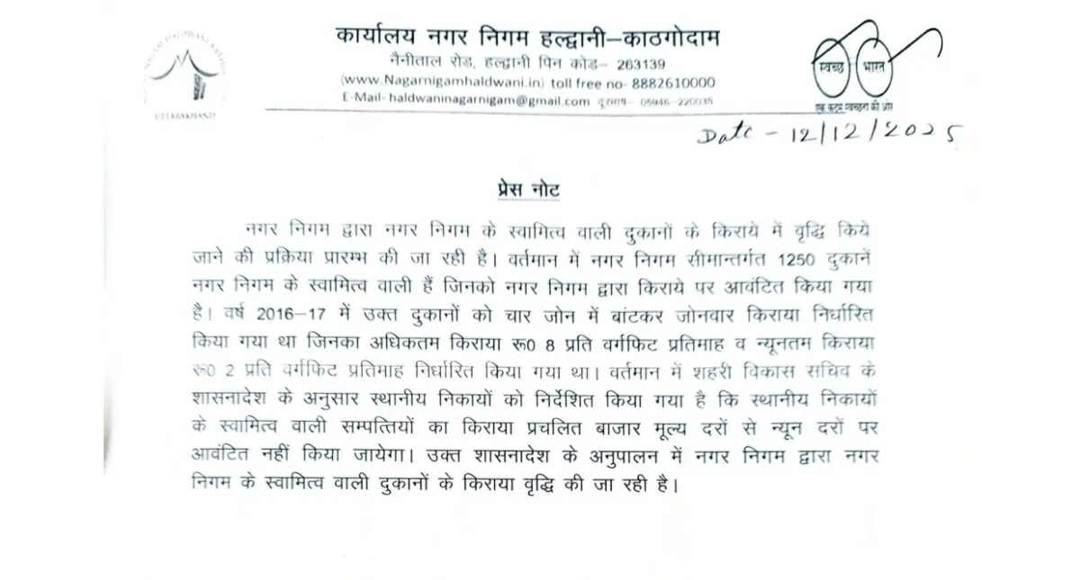 अब शहरी विकास सचिव के आदेश के बाद स्थानीय निकायों को निर्देश दिए गए हैं कि स्वामित्व वाली संपत्तियों को बाजार मूल्य के न्यूनतम किराए पर आवंटित नहीं किया जाएगा। इसी निर्देश के अनुपालन में नगर निगम हल्द्वानी ने दुकानों का किराया बढ़ाने की प्रक्रिया शुरू की है।