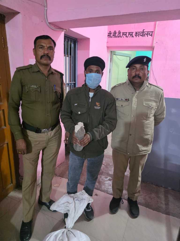 02- हरीश सिंह मेहता पुत्र स्व0 मोहन सिंह मेहता निवासी रावत नगर द्वितीय बिंदुखत्ता उम्र 26 वर्ष को 74 पाउच कच्ची शराब के साथ गिरफ्तार किया गया।